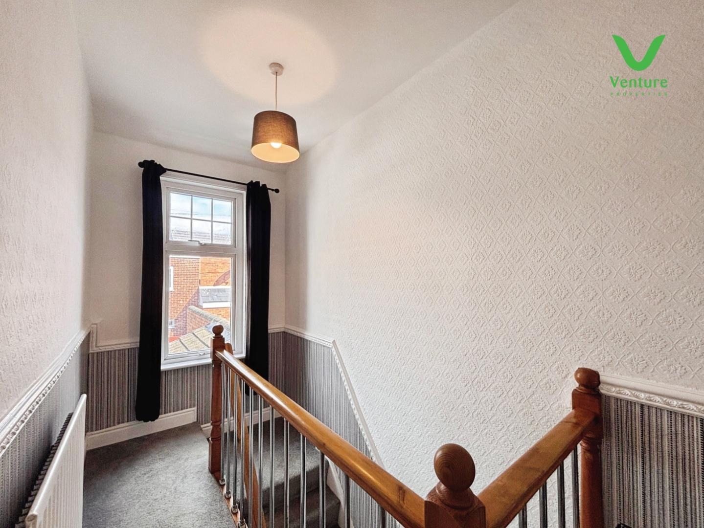 Spindle balustrade, UPVC double glazed window, central heating radiator, dado rail and loft access.