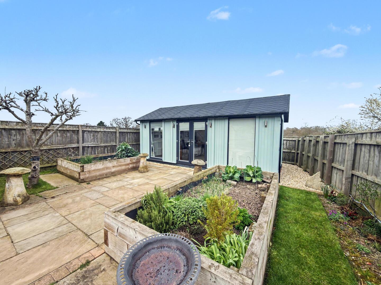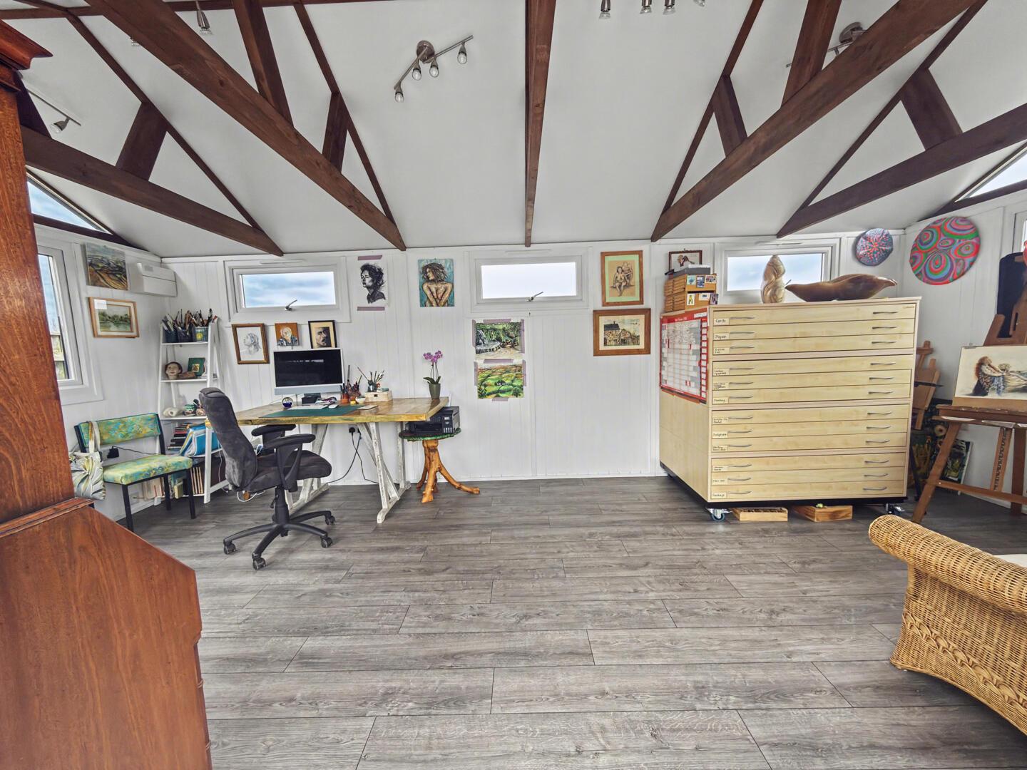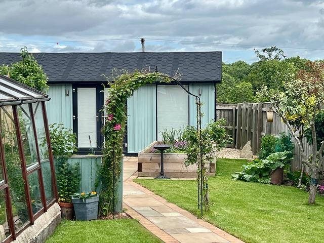 The beautifully maintained gardens further enhance the appeal, offering a private and inviting space for outdoor relaxation and entertaining. The garden room/sun room provides a seamless transition to the outdoors, opening directly onto the rear patio—perfect for enjoying the surroundings in warmer months. A particular highlight is the exceptional summerhouse, currently utilised as an art studio. Finished to a high standard with underfloor heating, internet. insulation, and full double glazing, it provides a highly versatile, year-round space—ideal as a creative studio, home gym, or tranquil workspace.