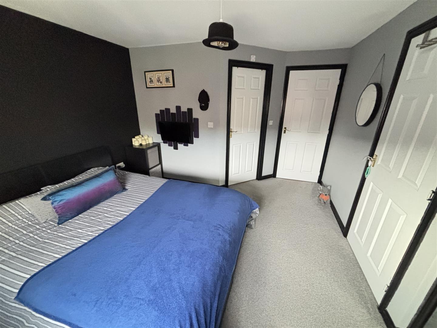 Generous master bedroom comprising of a UPVC double glazed window to the front, built in wardrobe, further useful storage cupboard and radiator.