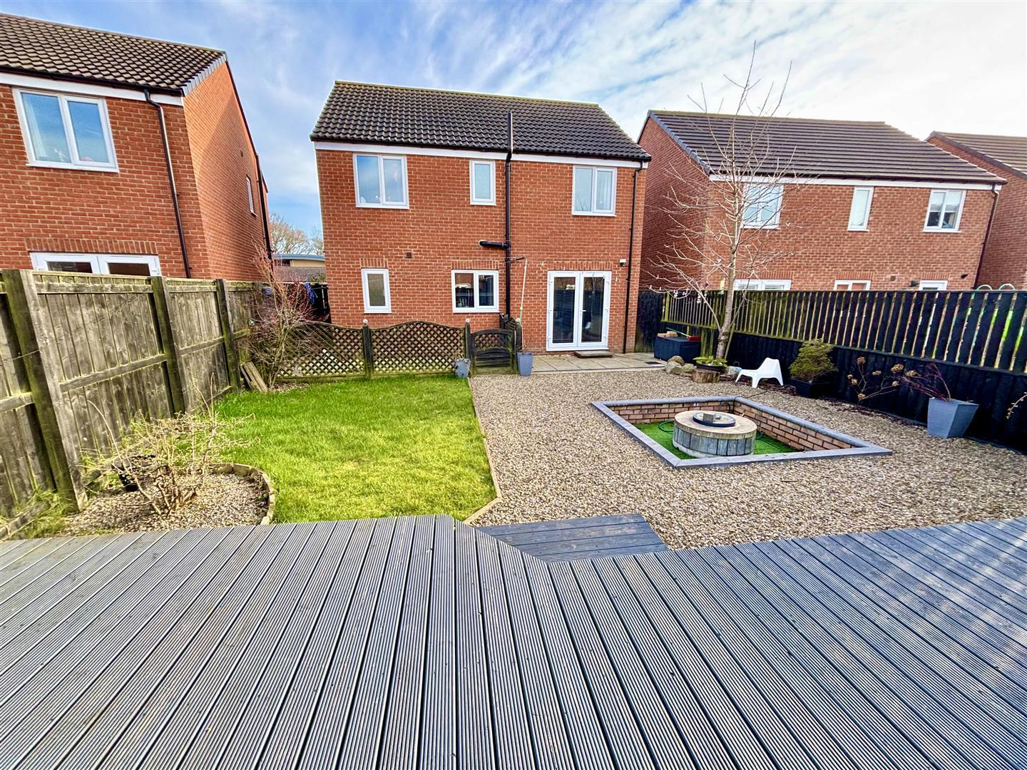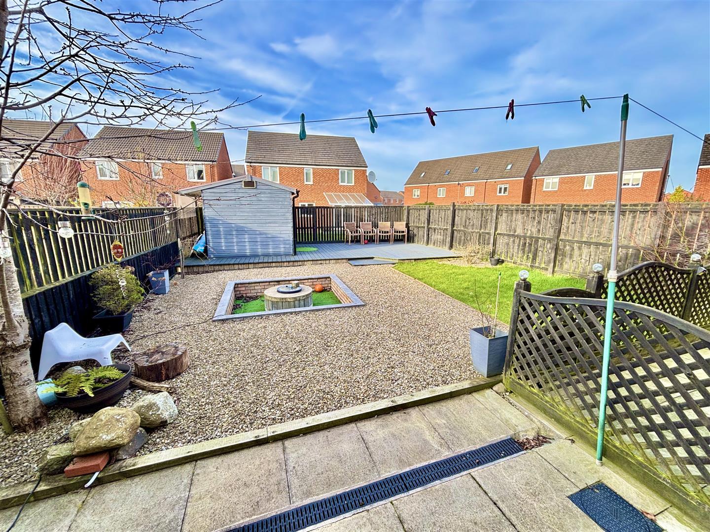 The front of the property provides off street parking and has access to the garage, whilst the rear garden has been landscaped to include a large decked patio area with shed, a fire pit, further paved patio area and lawn.