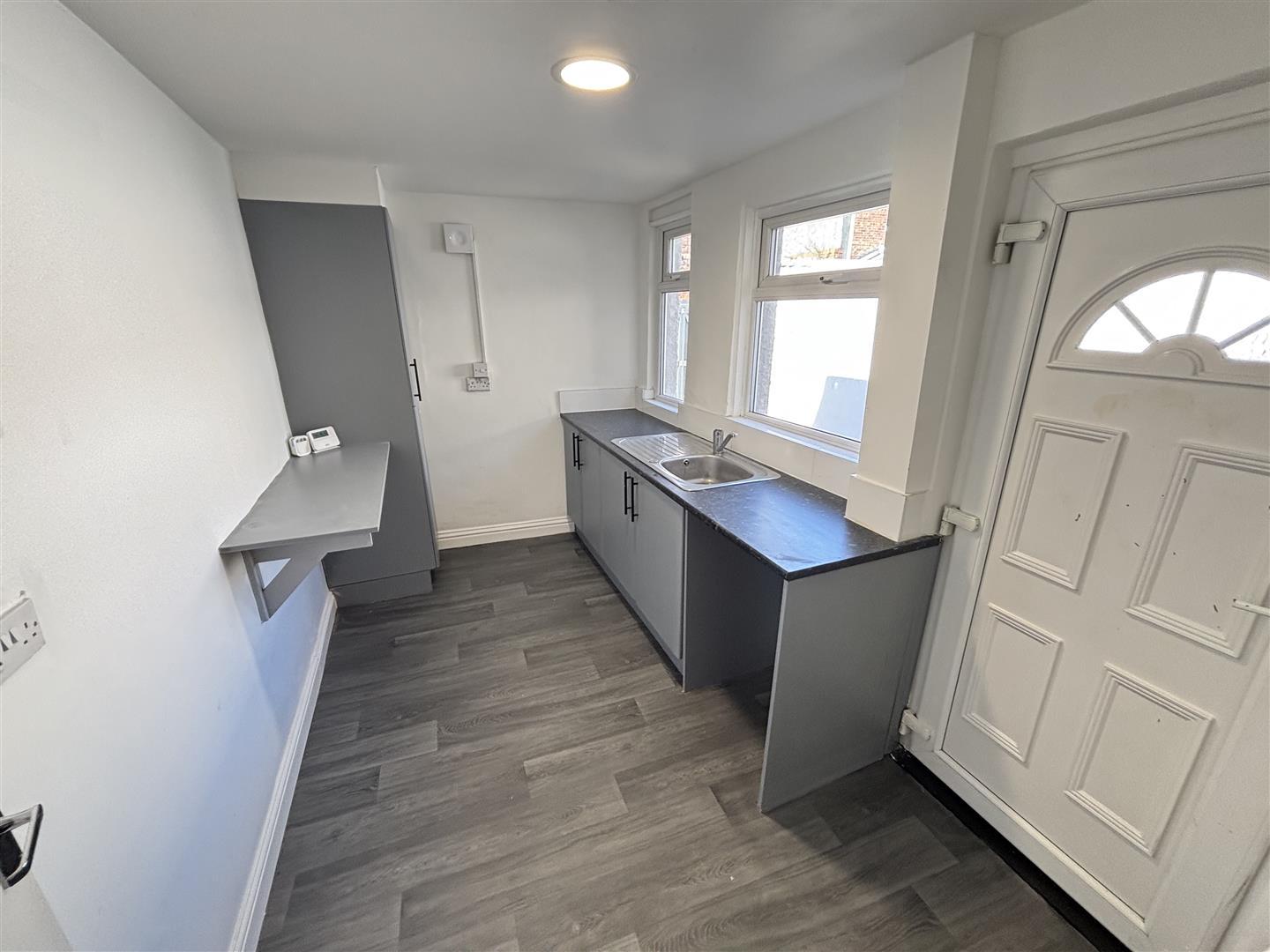 Fitted with co-ordinating units and work surfaces incorporating a stainless steel sink and drainer unit with mixer tap, radiator, cupboard housing a conbi gas central heating boiler, a UPVC double glazed window to the side and UPVC external door to the rear yard.