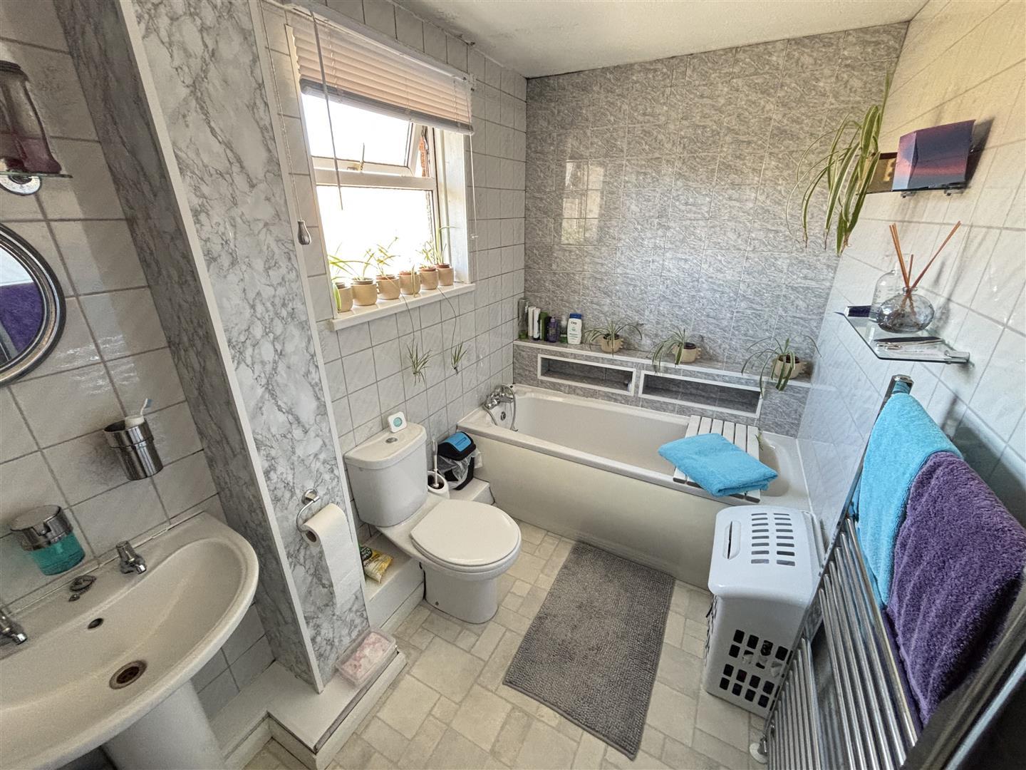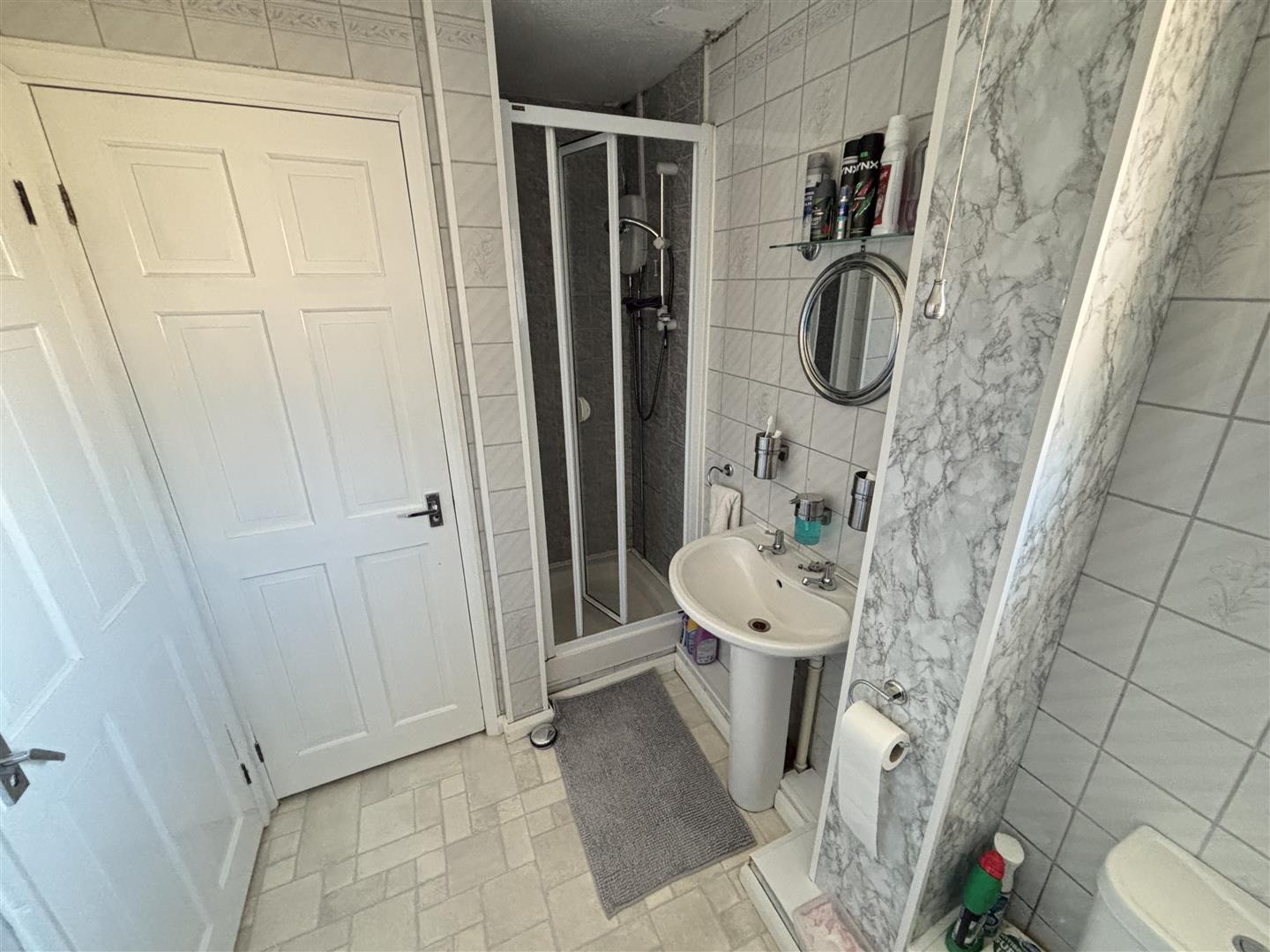 Fitted with a panelled bath with hand held mixer shower, separate cubicle which does require a new shower, pedestal wash basin and WC. Having a heated towel rail, storage cupboard and UPVC double glazed opaque window to the front.