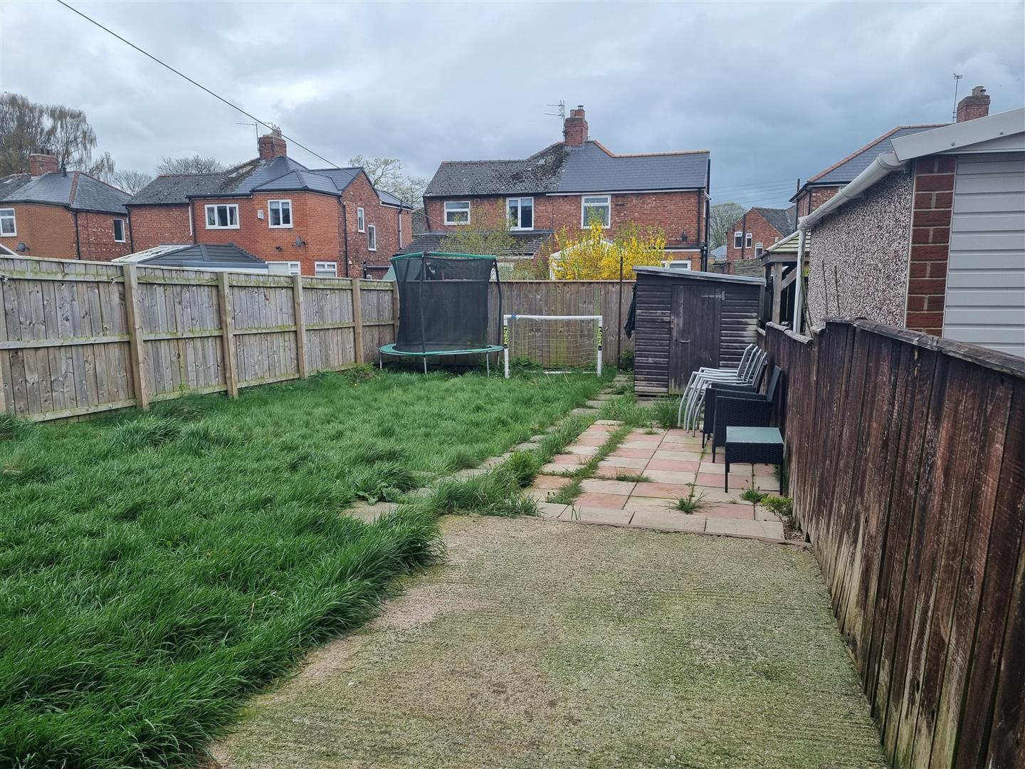 To the rear the enclosed garden is mainly laid to lawn with patio area and storage shed.