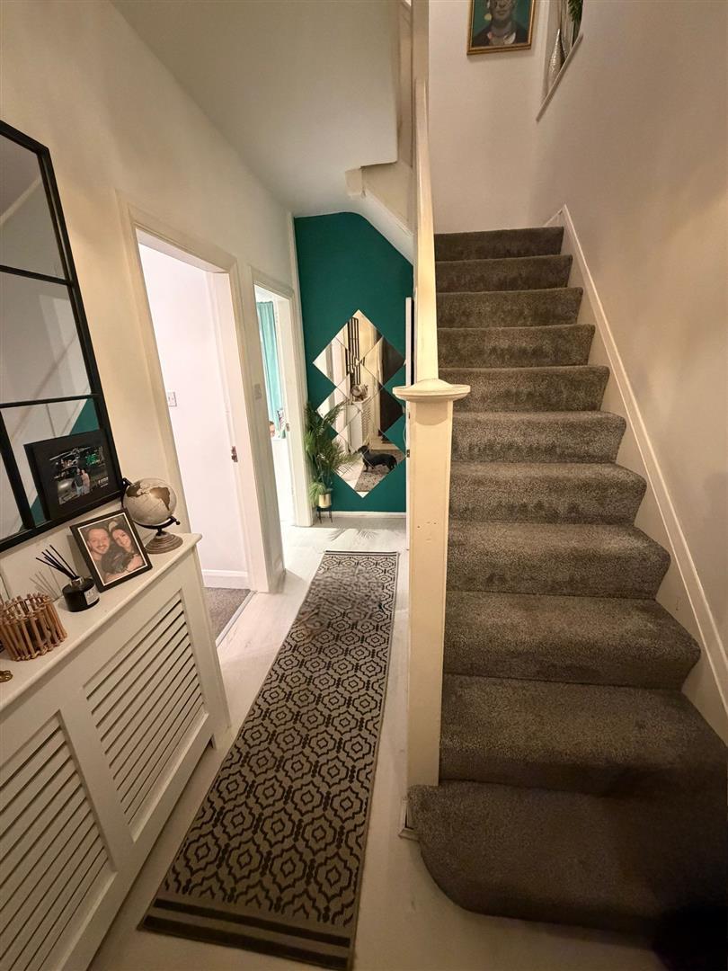 Door to front and staircase to first floor landing.