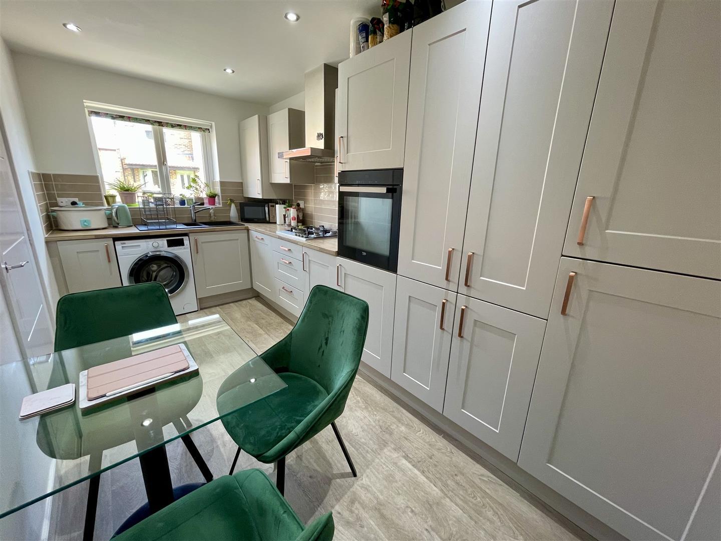Upvc double glazed window to front, fitted with wall, base and drawer units, four ring hob with extractor over and oven. Sink with mixer tap and integrated dishwasher and fridge freezer. Space for a washing machine and radiator.