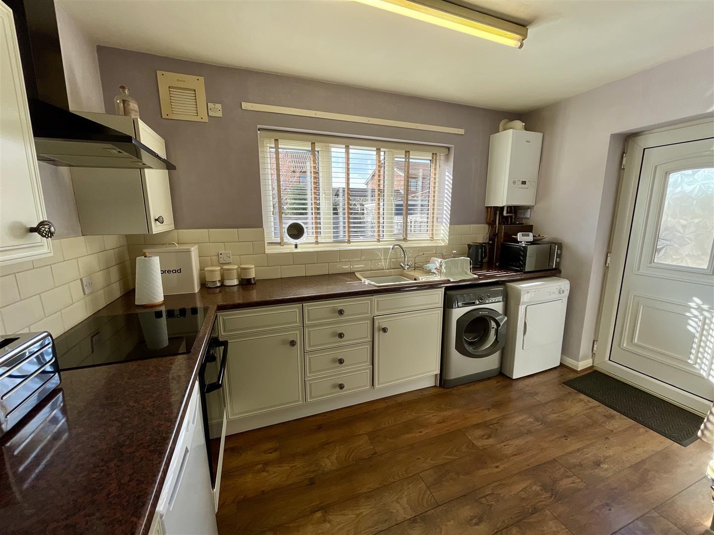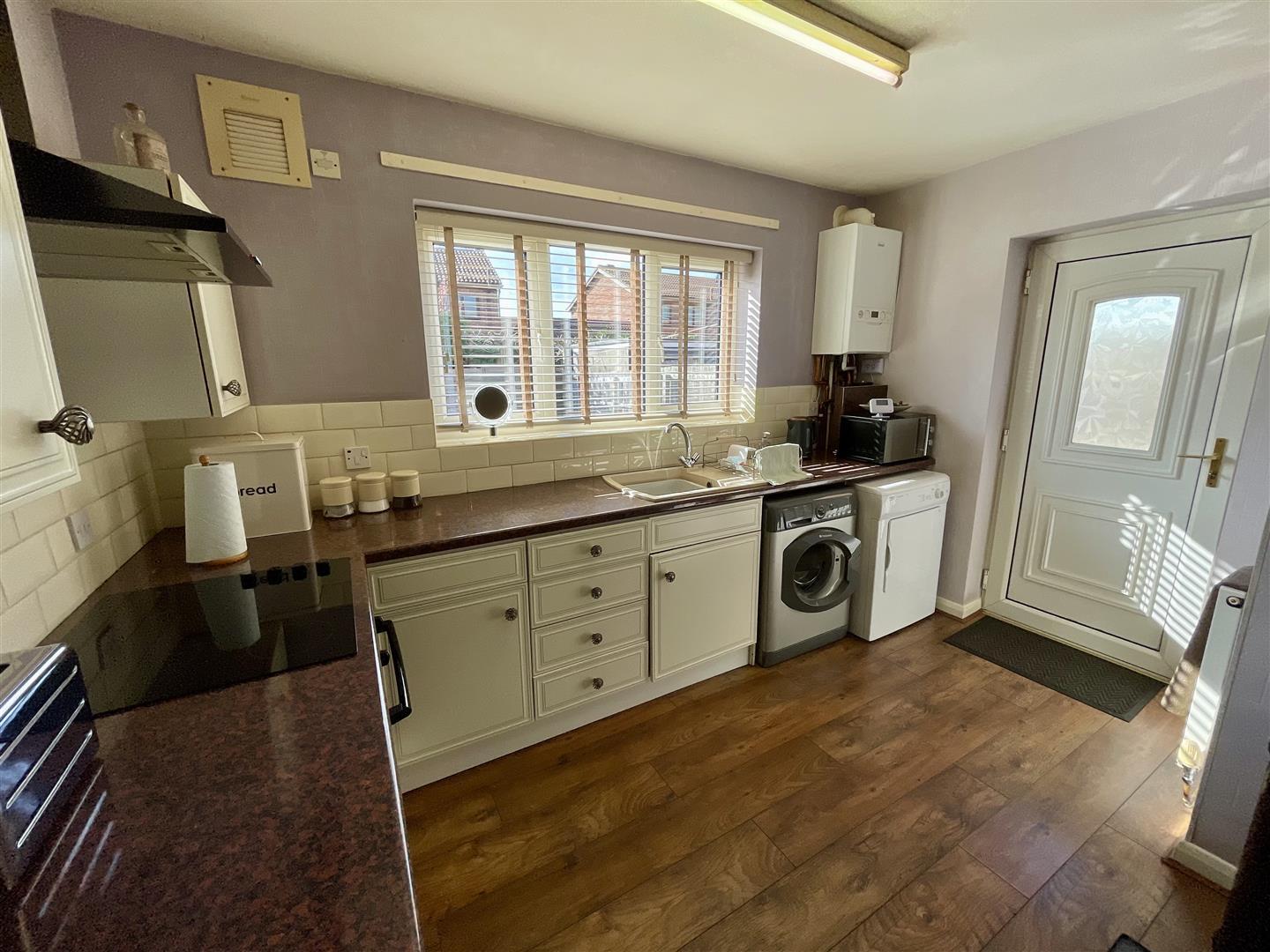 Upvc double glazed window to rear, fitted with wall, base and drawer units, sink unit with mixer tap, electric hob and oven with extractor over. Space for a washing machine, tumble dryer and fridge freezer Radiator and Upvc door to side. Part tiled New York style tiled walls.