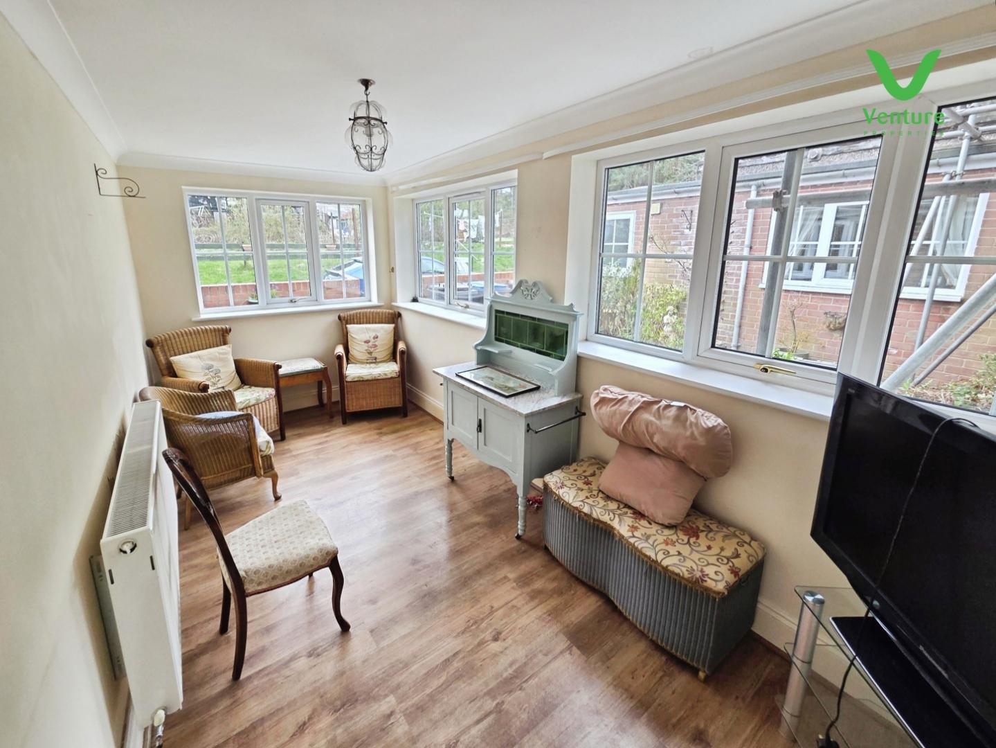 Laminate flooring , central heating radiator and three uPVC double glazed windows to rear.