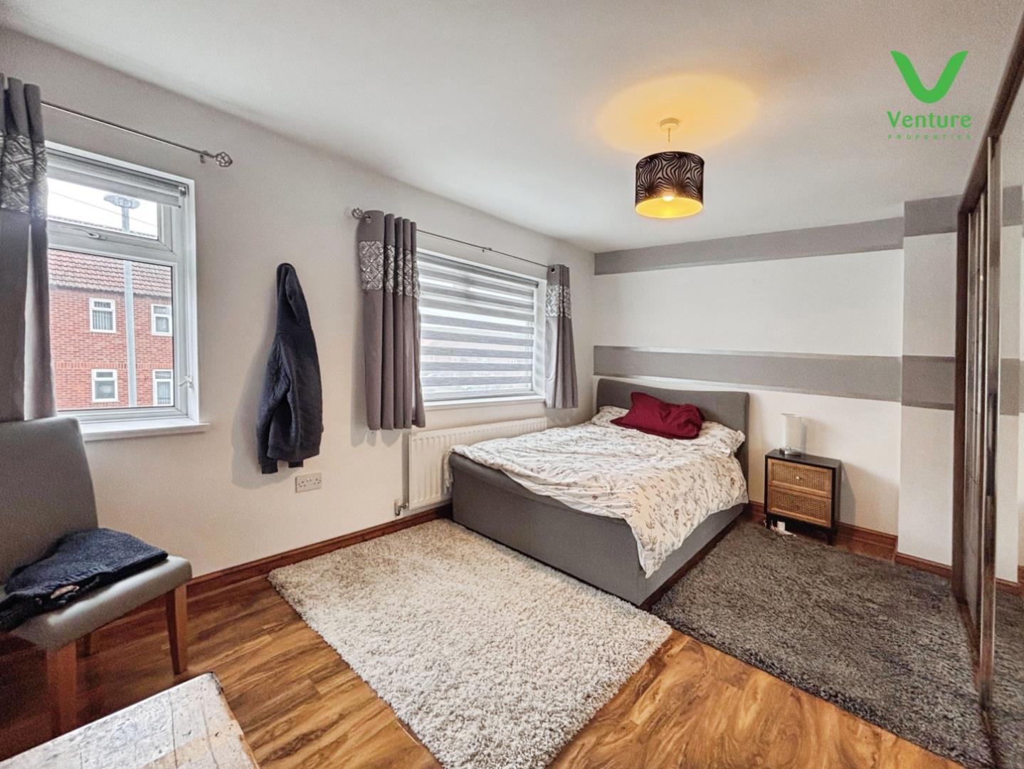 With laminate wood flooring, central heating radiator and uPVC double glazed window to front.