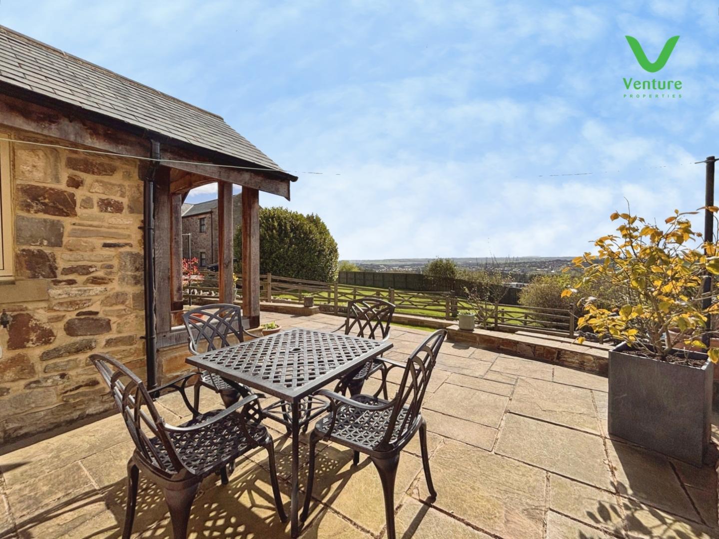 Immediately to the front of the property there is a large paved patio area, providing ample seating. There is also a lawned garden. Also to the front of the property there is off street car parking for two vehicles as well as a single garage