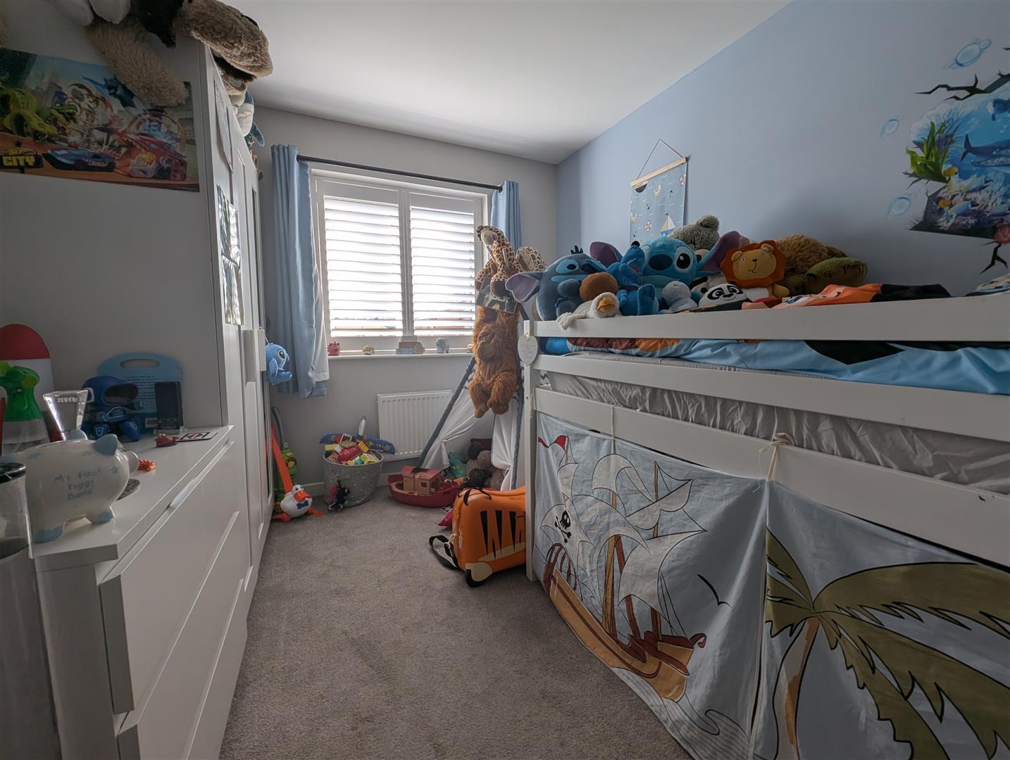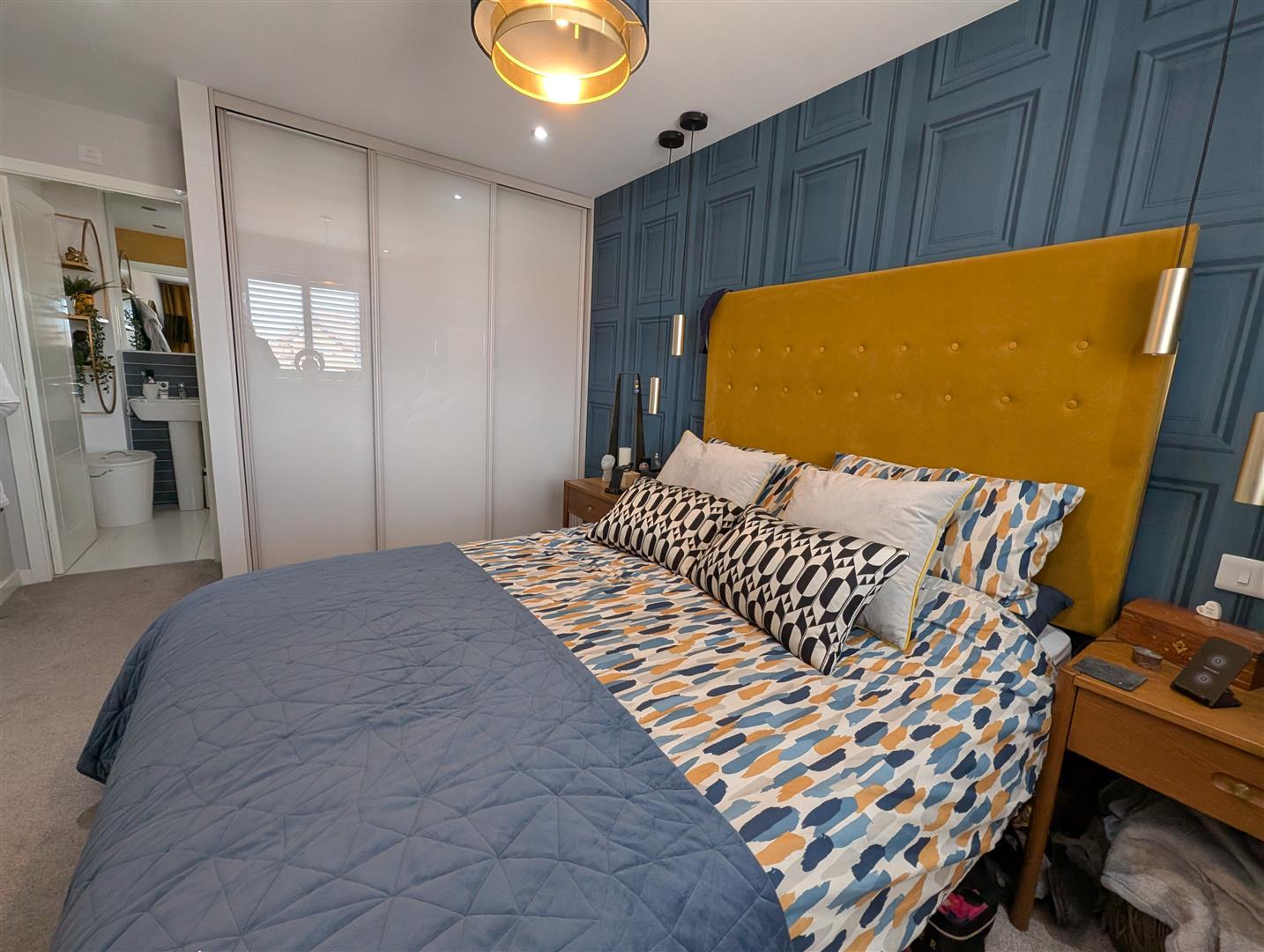 Upvc double glazed window to rear, fitted wardrobes with mirrored sliding doors and access to second en-suite shower room and radiator.
