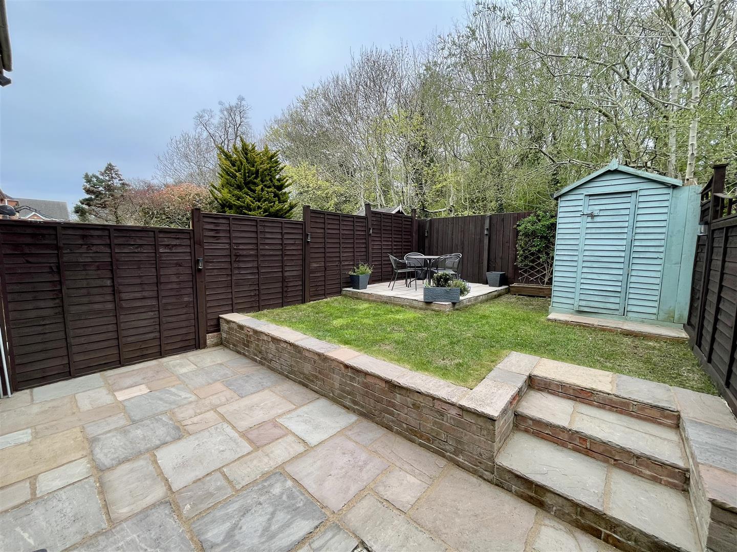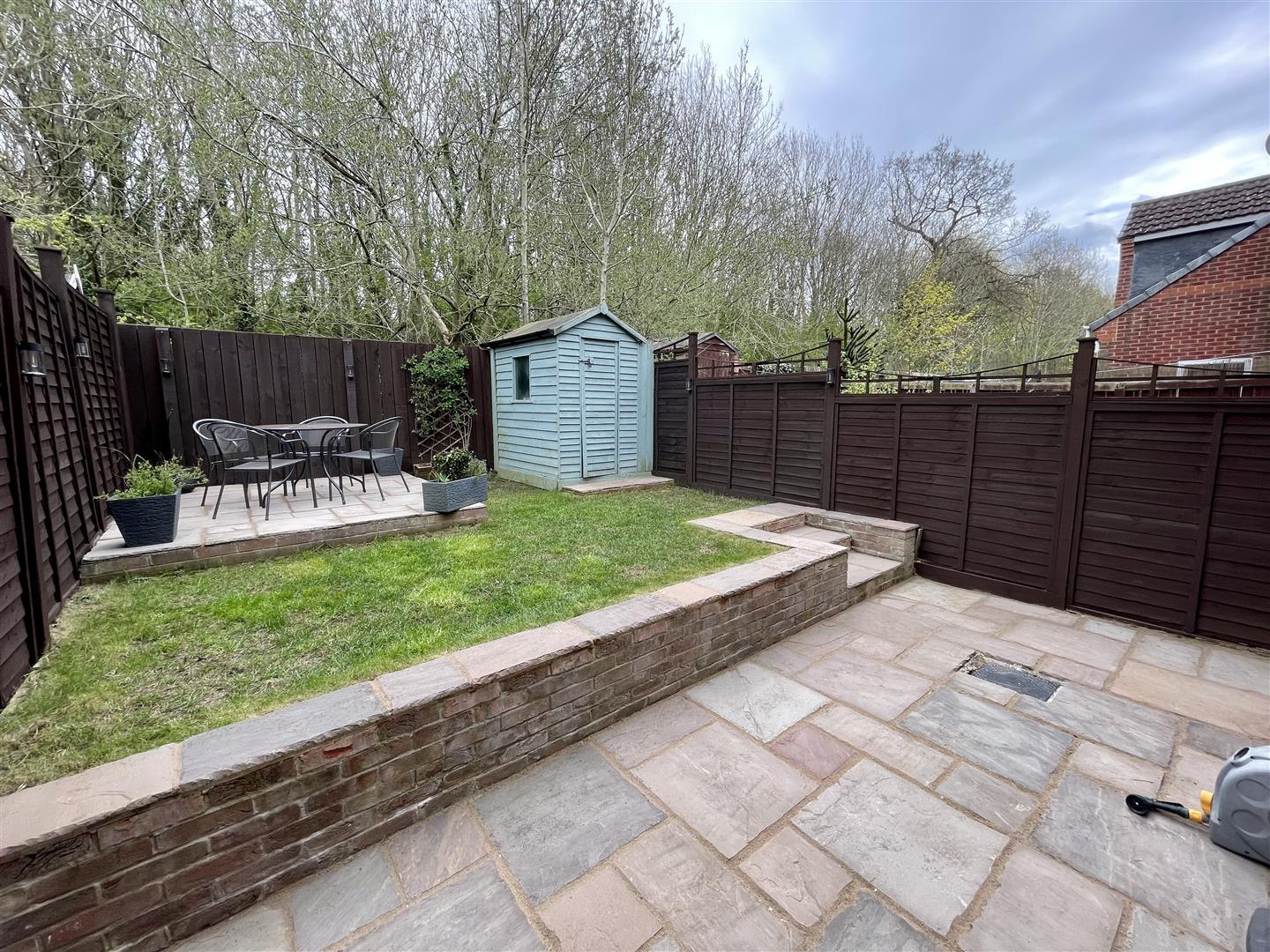 To the rear is a split level enclosed garden, part laid to to lawn with patio area, shed and outside tap.