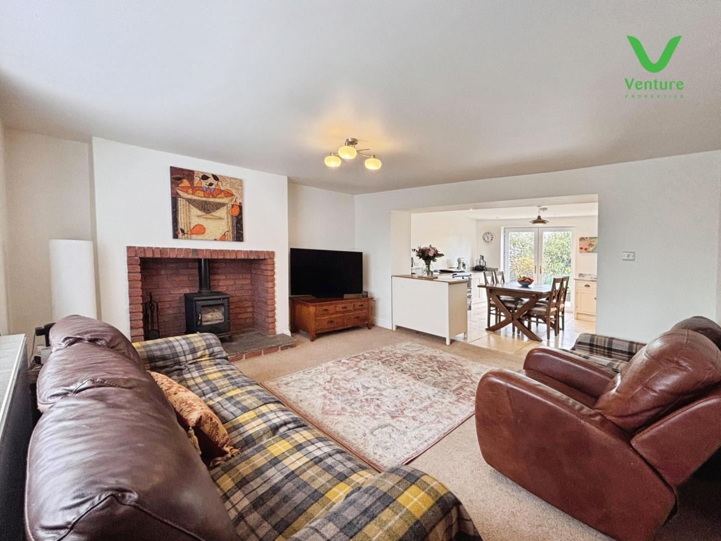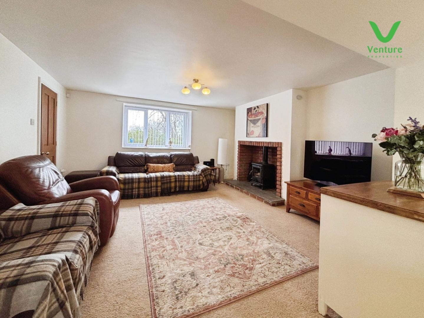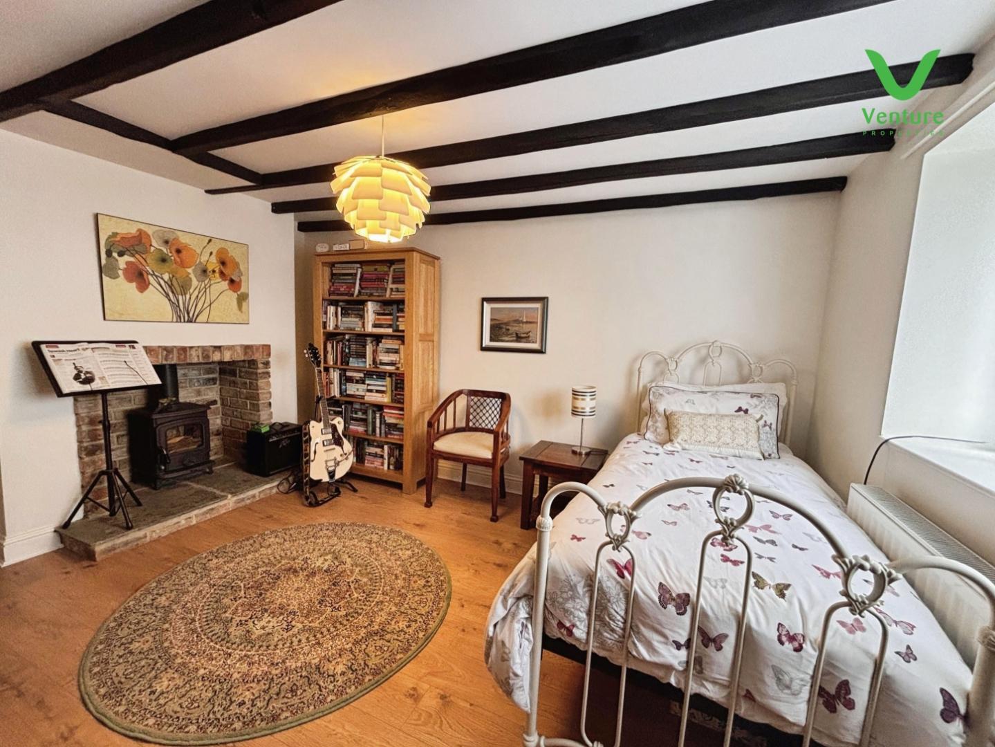 Character features to the main living room include a fireplace with wood burning stove, adding a focal point and sense of warmth.