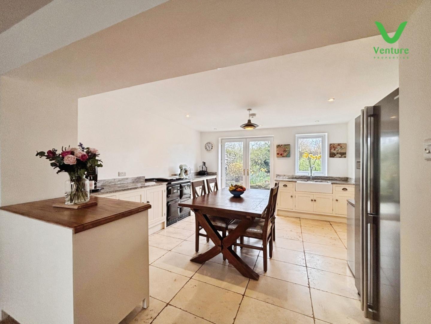 Sympathetically modernised by the current owners, the property provides two reception rooms and a bespoke, hand made Staples Woodcraft kitchen, incorporating a gas fired Rayburn. Thus providing flexible living and dining options.