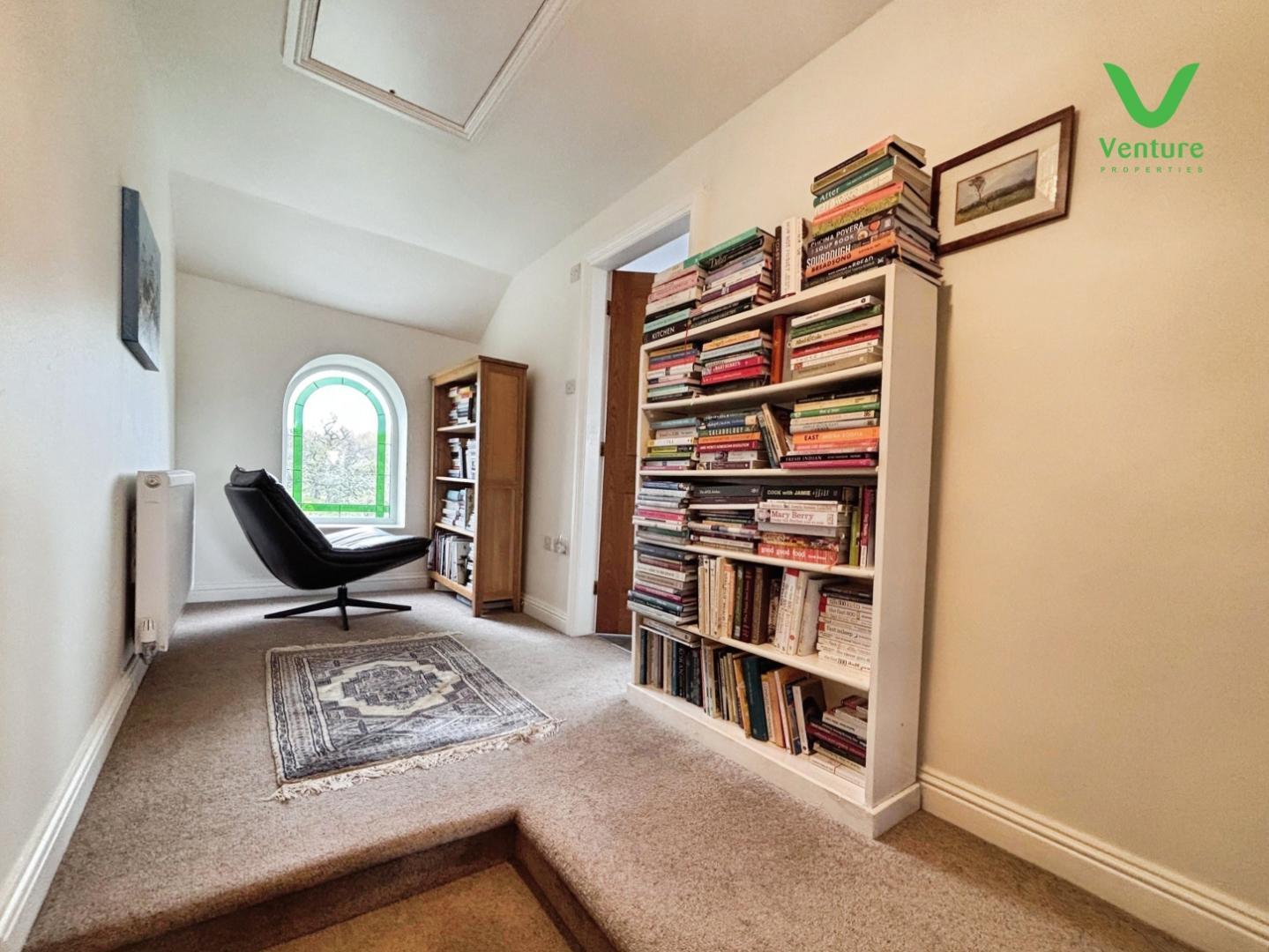 A spacious landing area having feature arched window to rear, offering views over the rear garden and open countryside beyond. Access to loft hatch which the seller has advised is insulated and partly boarded, with a drop down ladder.