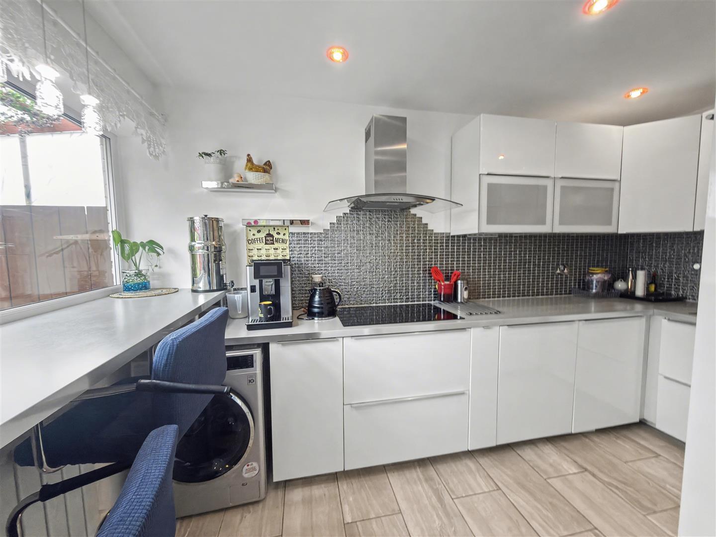 Situated to the rear with a modern range of wall and floor units with integrated oven and hob, pantry store and window to rear elevation.