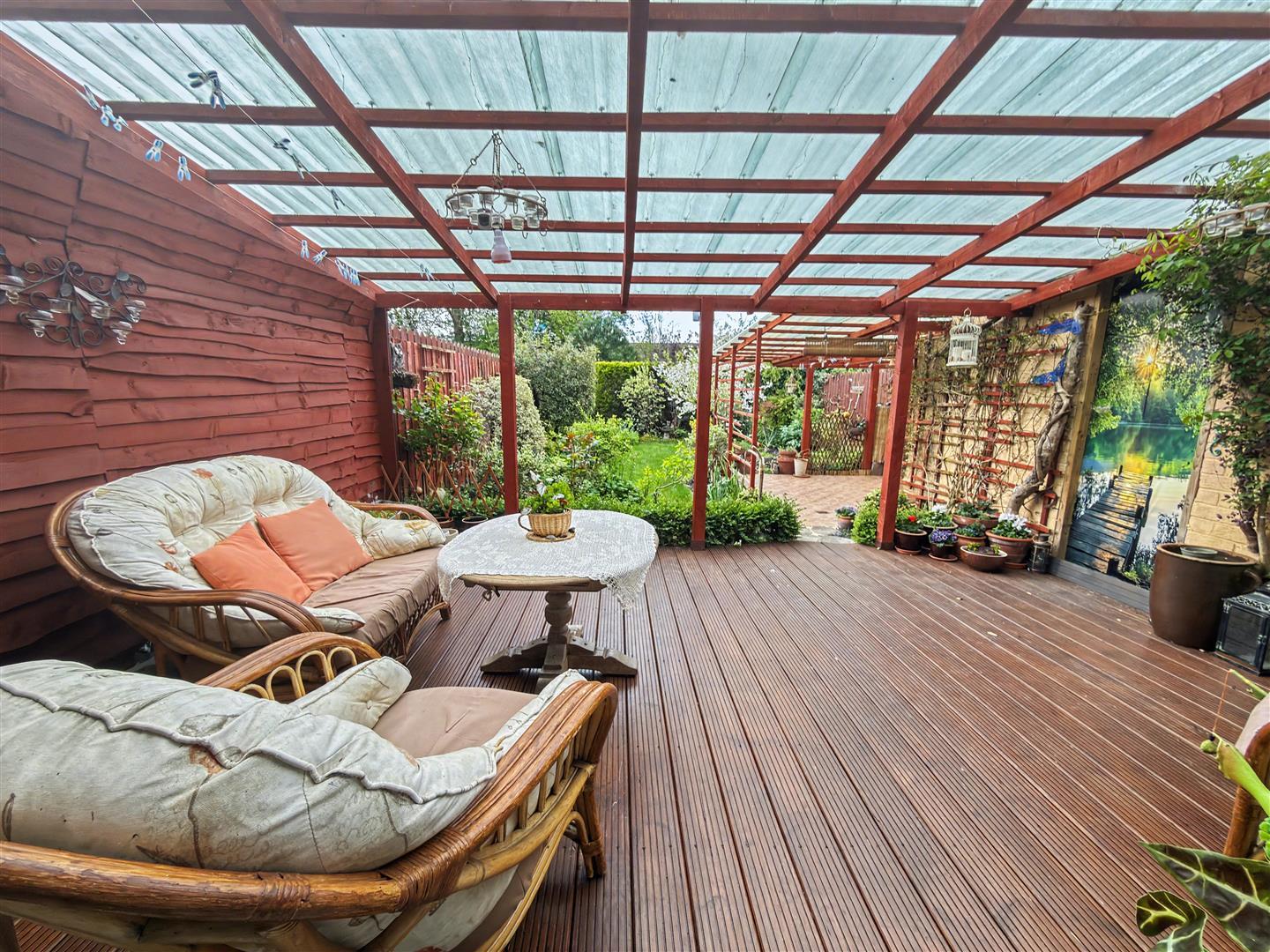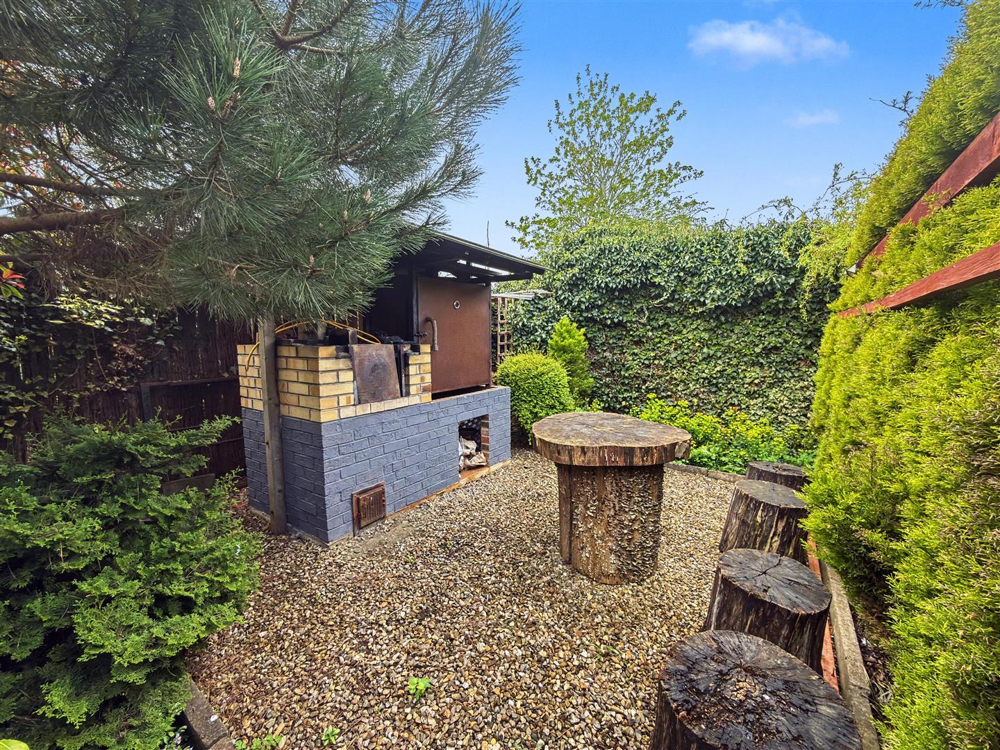 The garden has been thoughtfully maintained by the current owner to an exceptional standard. Expertly landscaped, it offers a stylish seating area, practical side gate access for bins, and a bespoke pizza oven area complete with seating—ideal for outdoor entertaining.