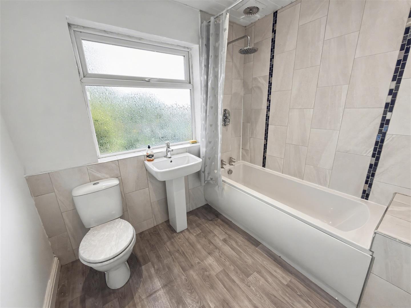 Upvc double glazed obscure window to rear, panelled bath with shower over and screen, wash hand basin and w.c. Radiator.