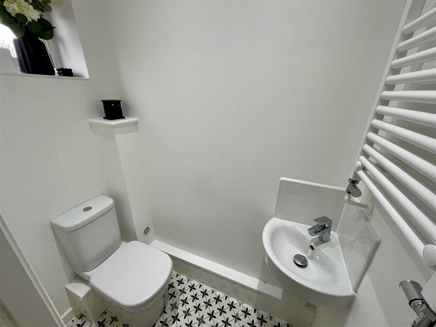 Upvc double glazed window to front, wash hand basin, w.c and heated towel rail.