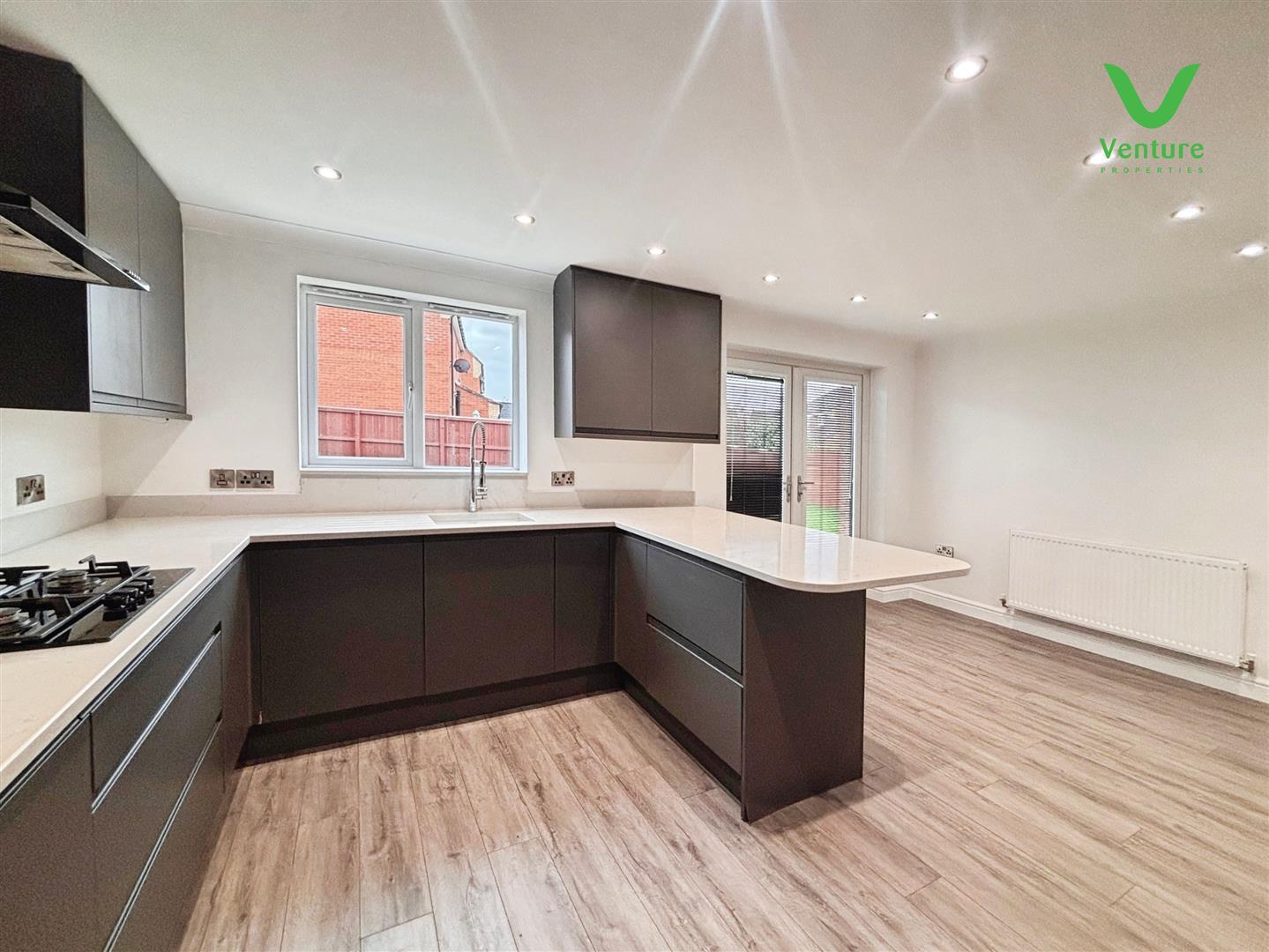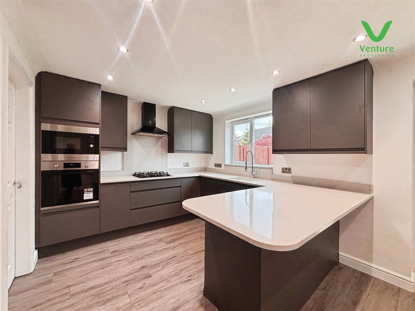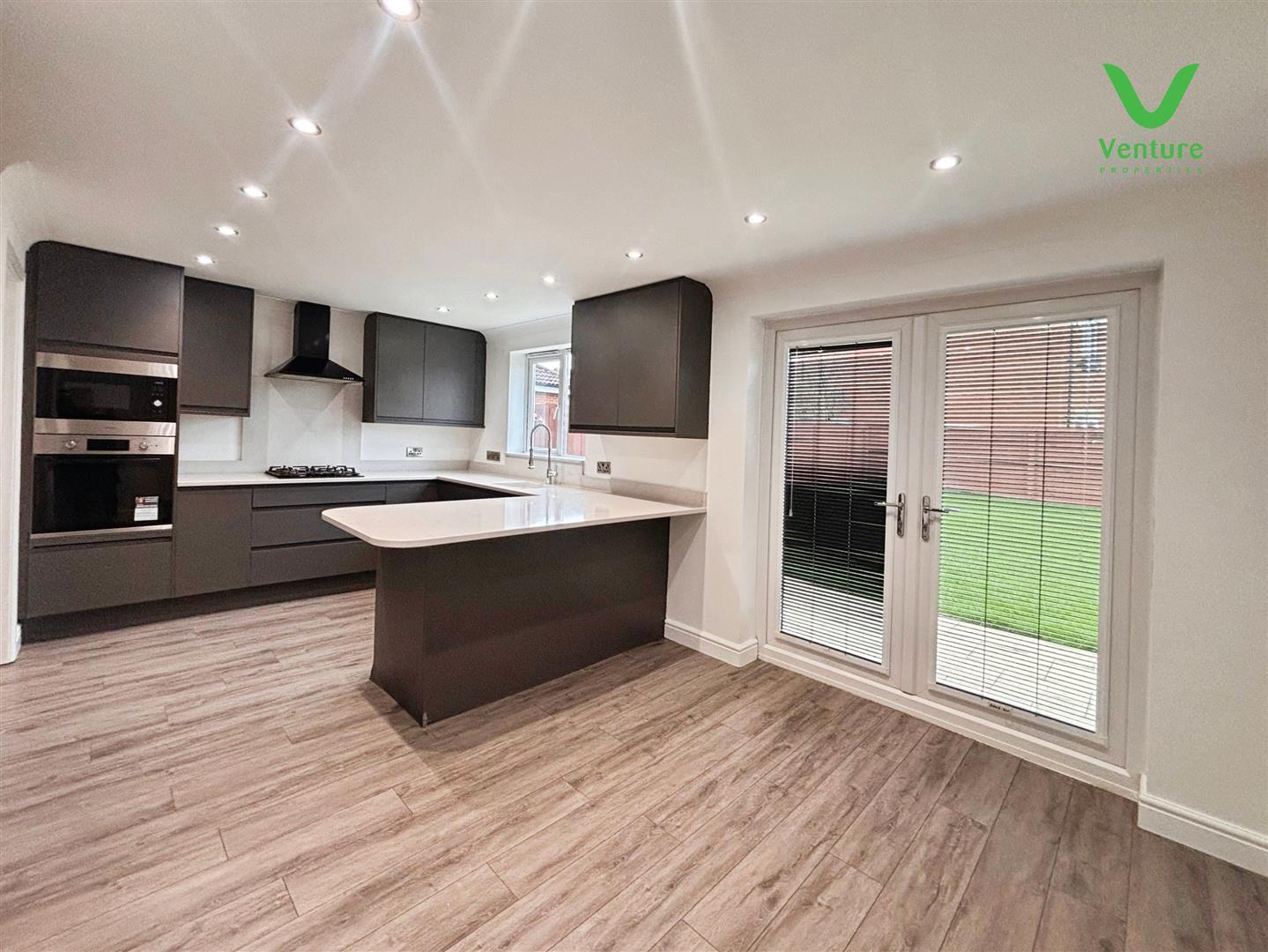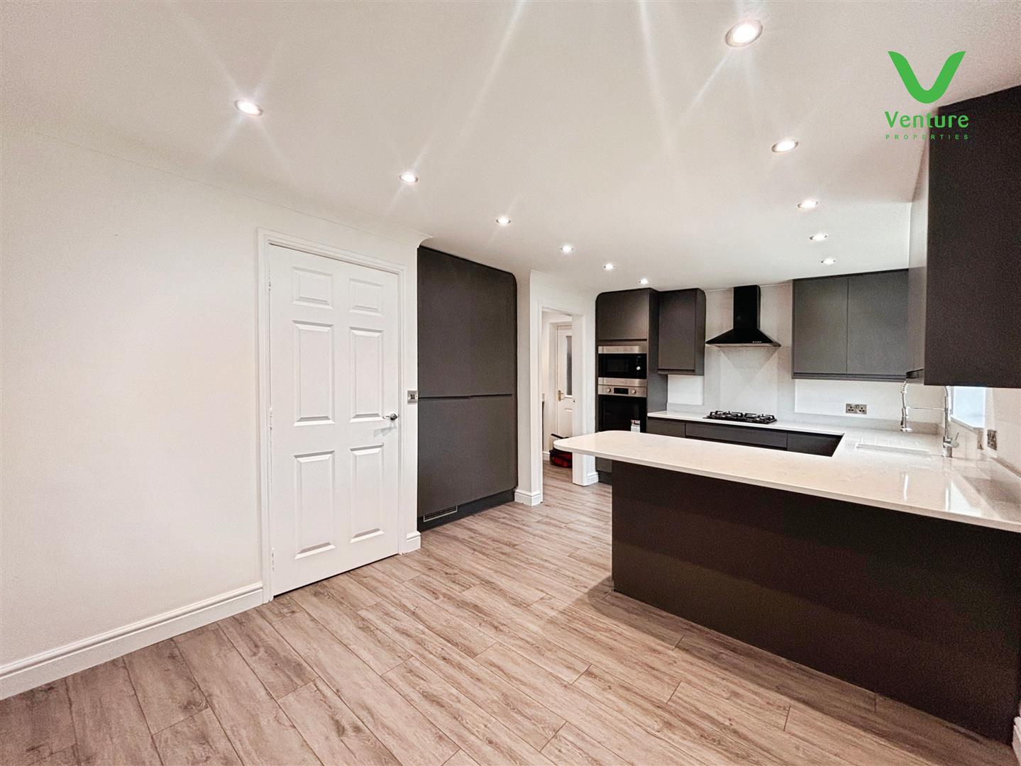 Extensively fitted with a range of wall and base units, granite working surfaces over, inset one and a half bowl sink unit, mixer tap over, upvc double glazed window to the rear garden, a range of integral appliances including electric oven and microwave, gas hob and extractor hood over, dish washer, tiled splash backs, breakfast bar, central heating radiator. There is ample space for a large dining table as required, patio doors to garden.