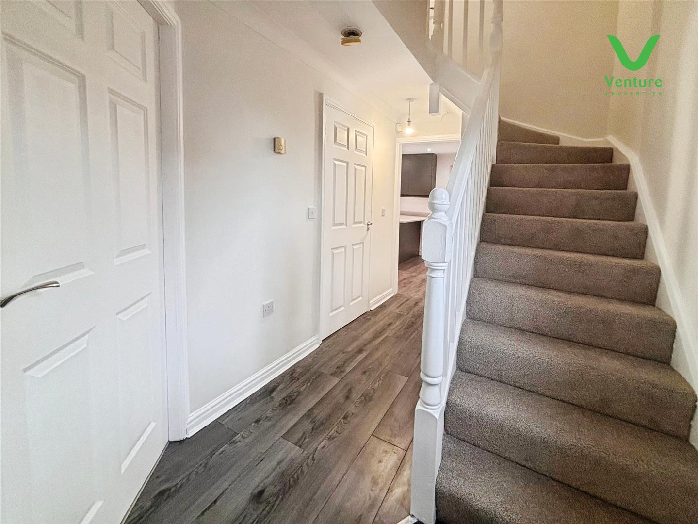 Having composite front entrance door, open plan spindle staircase to the first and second floor, UPVC double glazed window, central heating radiator and understairs cupboard.