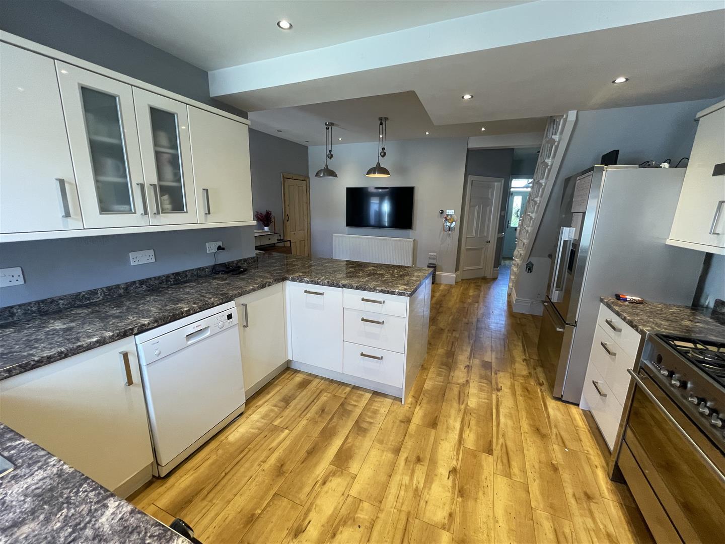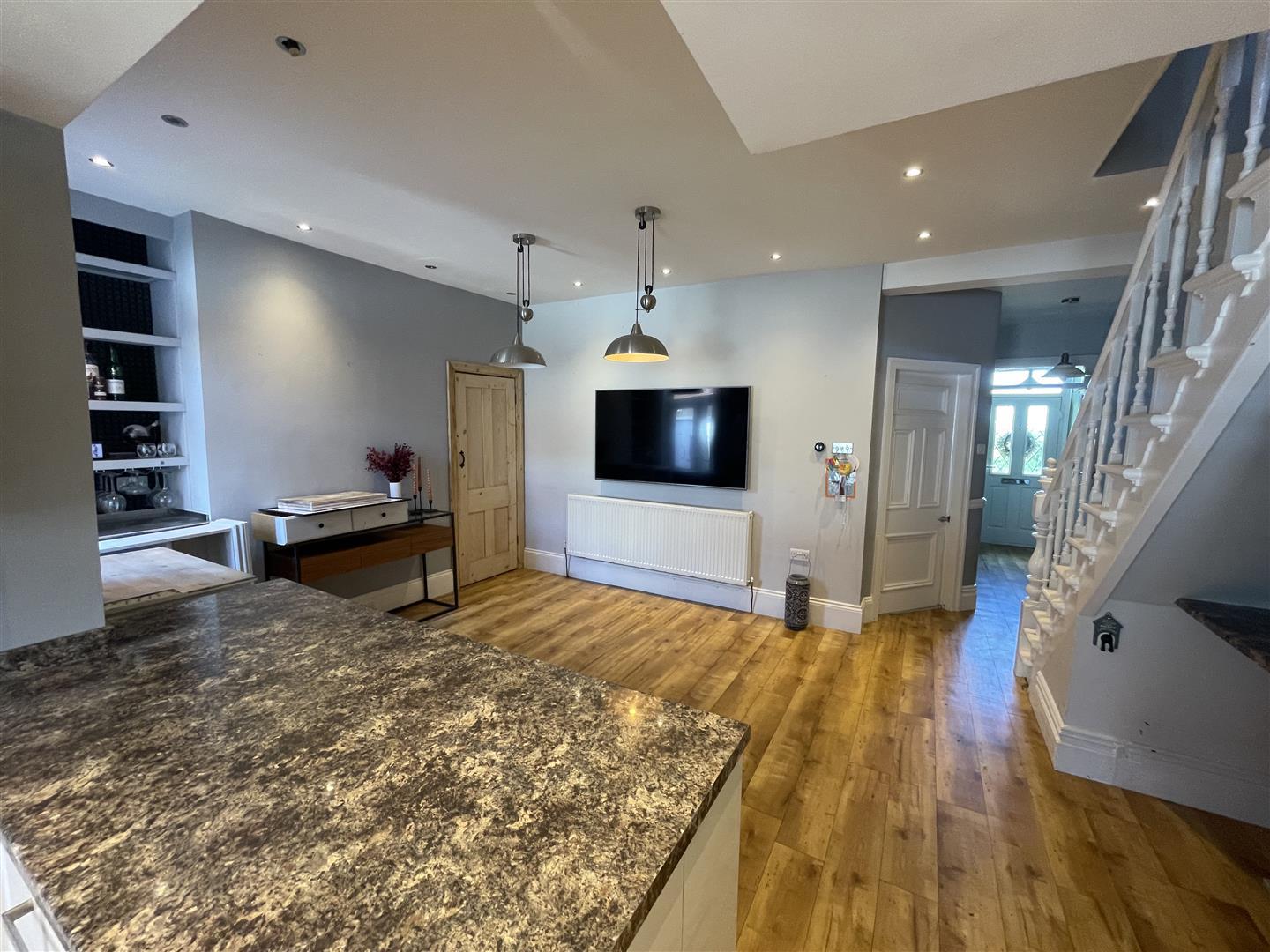 Upon entering, you are welcomed by an inviting entrance vestibule that leads into a generous entrance hall. The spacious lounge features a striking fire surround and a bay window, creating a warm and welcoming atmosphere perfect for relaxation. Adjacent to the lounge, the separate dining room seamlessly connects to a beautifully refitted cream kitchen, making it a joy for any home cook.