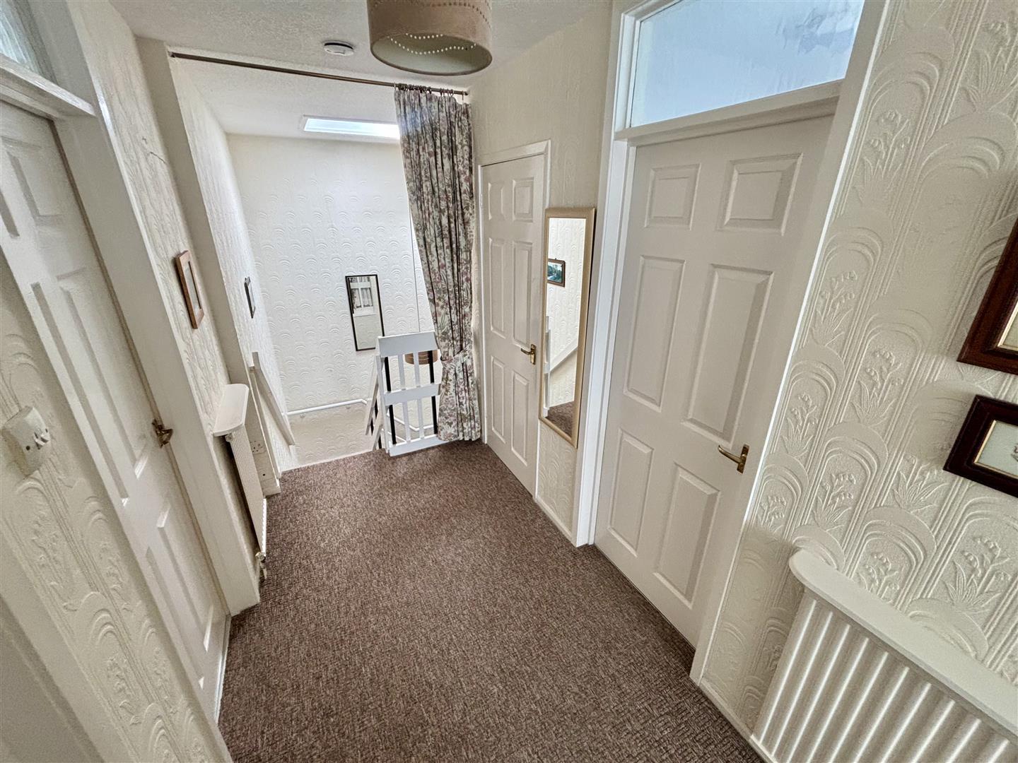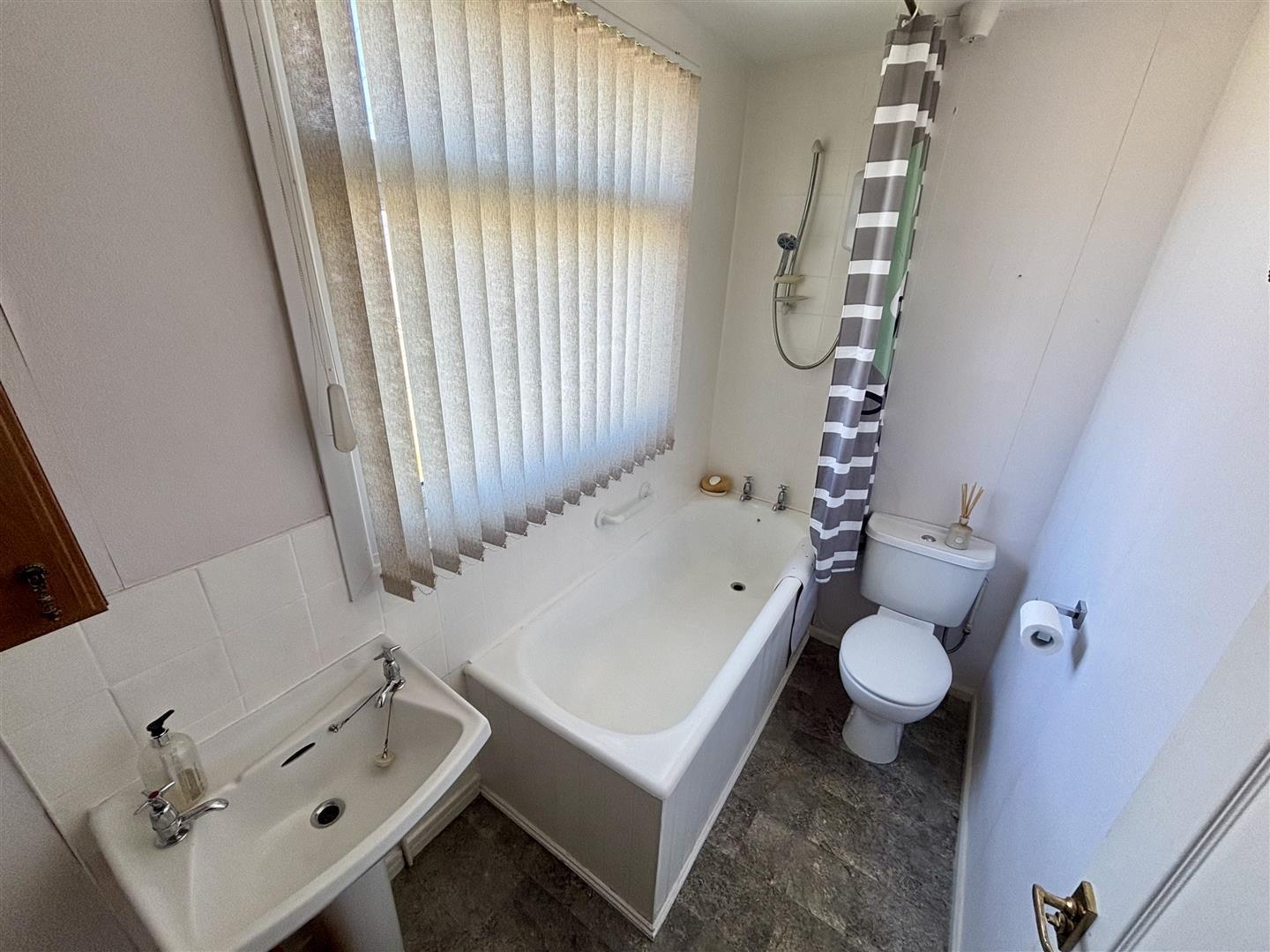 Comprising of a panelled bath with extractor over, pedestal wash basin, WC, tiled splashbacks, radiator and UPVC double glazed opaque window to the side.
