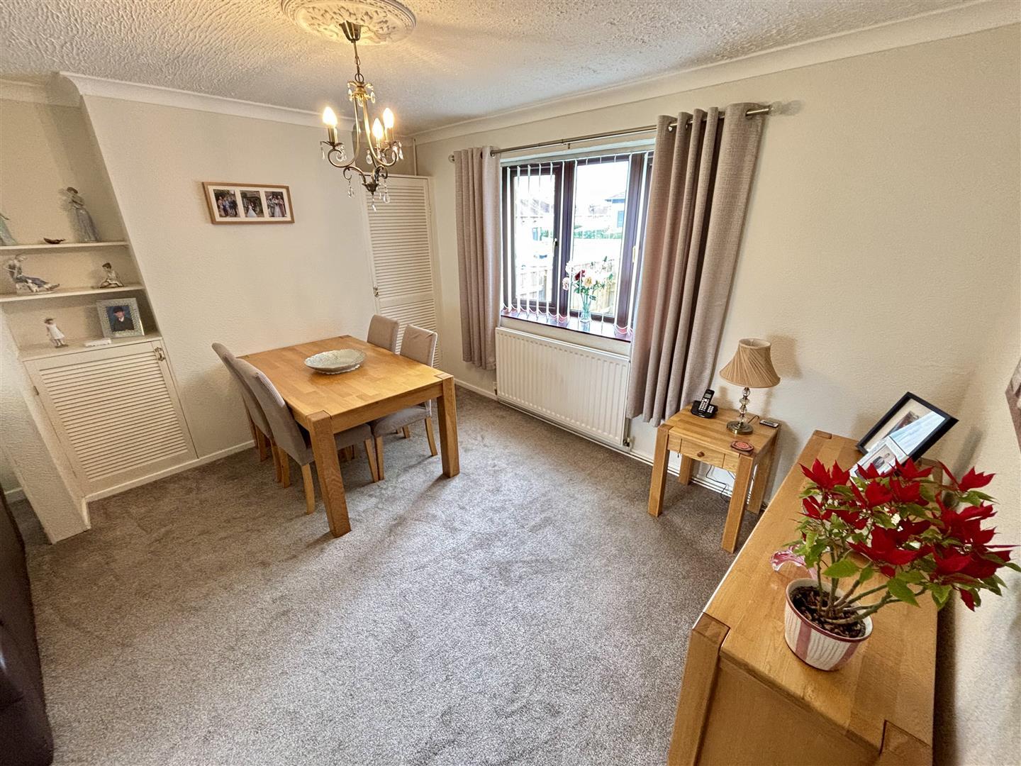 Having a UPVC double glazed bow window to the front, radiator and two storage cupboards. Opening through to the living room.