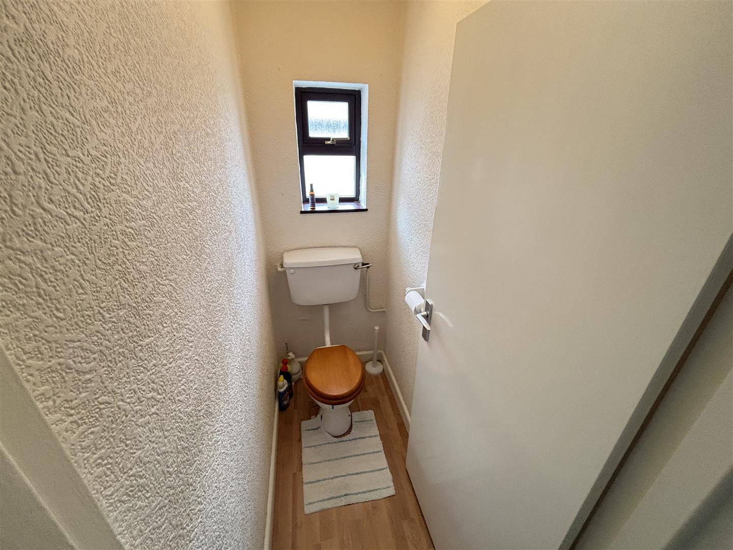 Comprising of a WC, laminate flooring and UPVC double glazed opaque window to the side.